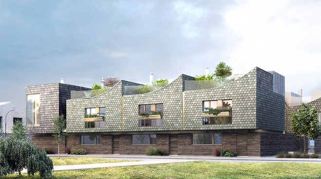 Lösningen blev därför att flytta upp odlingslådor och grönska på taket. Alla detaljer i husen har sedan skissats och finslipats ihop med arkitekten Marco Pusterla.